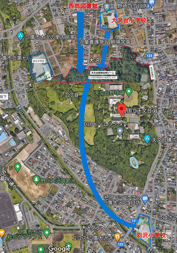 しかし天文台の森は100年以上続いている貴重な森です。そこを開発して建物を建てる・・ 「森を残し・・」とも言っていますが、どれだけの木を切って小学校+校庭そして図書館を作るのでしょう。